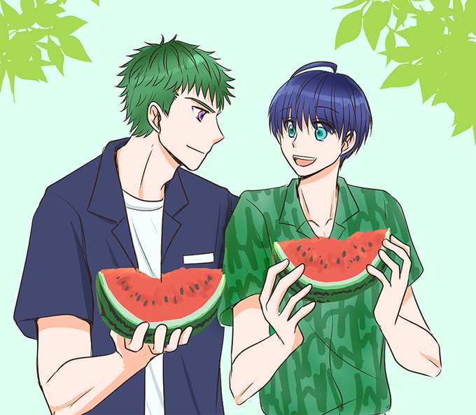 すいかを食べる丞と紬