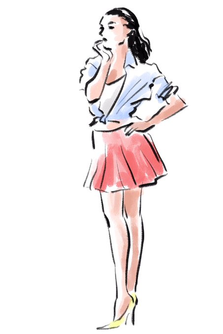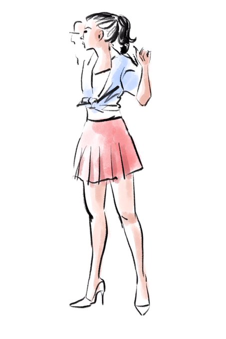 5/1四谷デッサン会ファッションエスキースで描きましたその1。投げ縄ツールとバケツ🪣だけで描いた。10分だと下手にしか描けない!
