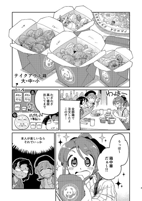 前回出したごはん図鑑本で登場した子達が、大盛りパスタと箱中華を食べに行くお話。図鑑では描き切れなかった事、補足、派生情報などを盛り込んだ漫画です。
