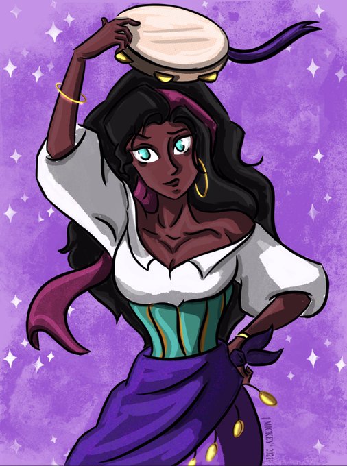 “Come and see me dance to the rhythm of the tambourines!” 💃🎶🎵✨ In honor of the #25anniversary of #thehunchbackofnotredame I did a little doodle of my favorite gypsy girl, the witch who set this flame 🔥 HAPPY ANNIVERSARY, My forever always Disney birth movie!! 🛎💃✝️🔥