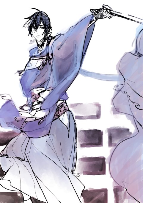 まほろばでさらーっと本体を触る三日月宗近とレクイエムで鶴丸に対して左手刀で切り返す三日月宗近ともくもくと踊る三日月宗近が好きです ※模写 #細かすぎて伝わらない壽乱舞音曲祭