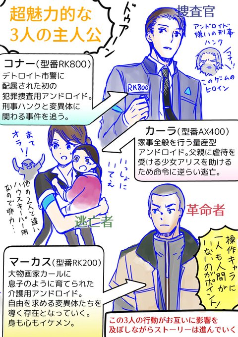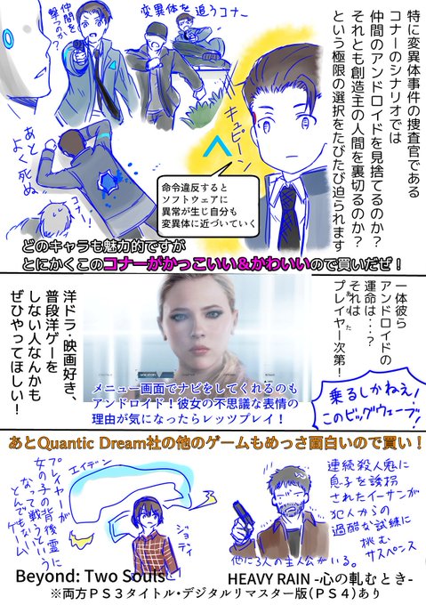 今巷で話題の超絶名作ゲーム「Detroit: Become Human」がめっちゃ面白いので、知らない人は損してる!ということで、デトロイト紹介まんがを勝手に描きました。字が多くて見づらくてすみません。よかったら読んでね!