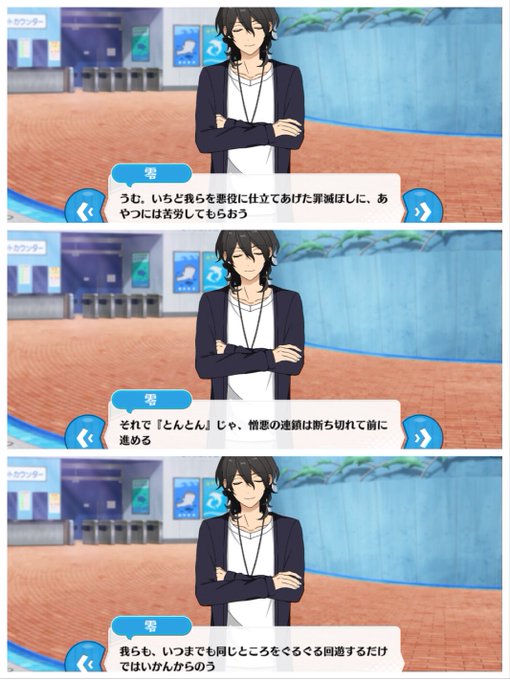 月永レオの言動は「他の4人に『剣を取らせる』ための煽り」。これ構図としてはまんま天祥院英智のヴァへの兎のミートパイと同じやつ(「喜べ!おまえの願いを叶えてやったぞ!」は「おめでとう!ありがとうって言いなさい」と概ね同じニュアンス)だし瀬名泉はやはり月永レオをあまりわかってない(恒例