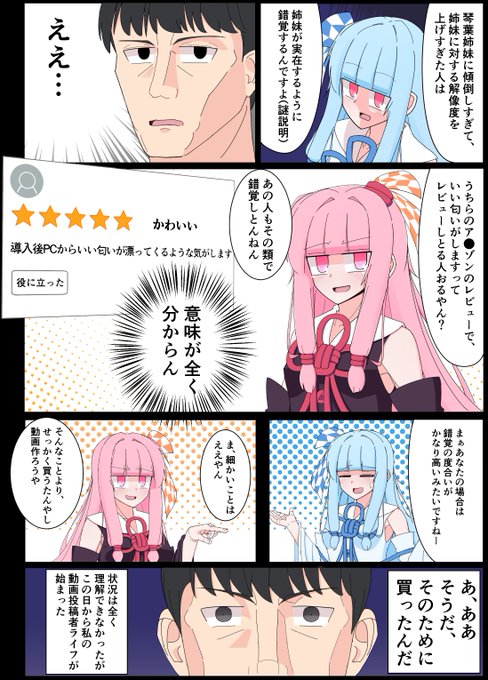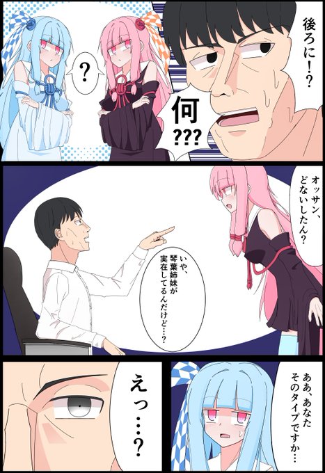 3/27開催のボイスコネクト2にて、「琴葉姉妹の幻覚が見える中年男性の漫画」を頒布します!こんな感じのフルカラー24ページです。スペースB-05にて、お待ちしております! #ボイスコネクト2サークル参加 #ボイスコネクト2