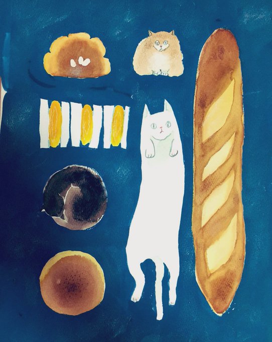 #画像を4枚晒したらrtがきてフォロワーがぶわーって増えると聞いて こどもたちとねこと美味しい食べ物の絵を描いています🍙