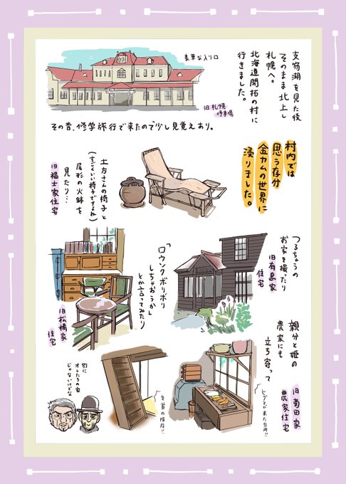 こちらは二日目の支笏湖・北海道開拓の村です。 たくさん描いて書いてしたので、読みづらかったらごめんなさいね😓 開拓の村は、ほんとにめちゃ面白いと思ったので、まだ行ったことない方は是非行かれてみて下さい😆