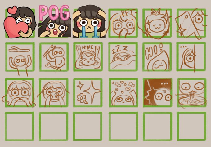 wowie a productive stream!! started by finally finishing the 3 month sub badge, then we made a new emote, doodled a bunch of emote ideas, and finished off by finishing the line art of pretty girl 👁️👄👁️✨