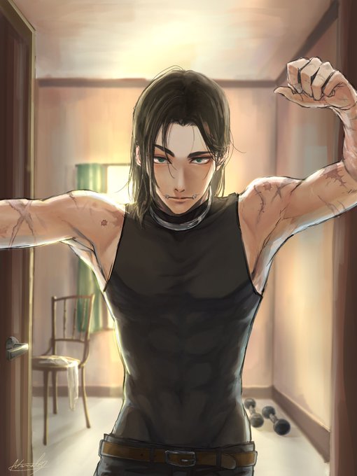 試合前にナワーブくんのお部屋訪問したらまだ準備中だった ※包帯の下の古傷に夢見てる(捏造注意) ※2枚目髪型差分