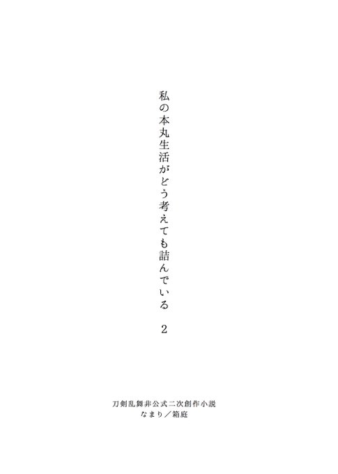 5/4スパコミで新刊「私の本丸生活がどう考えても詰んでいる2」を、表紙を描いていただいたシンさん(@krtb_tk )の東1タ23bに委託予定です!既刊の1巻も同様に委託の予定ですので良かったら是非ー!また通販の予約はこちらから→https://t.co/9qJ6kLxgJ7