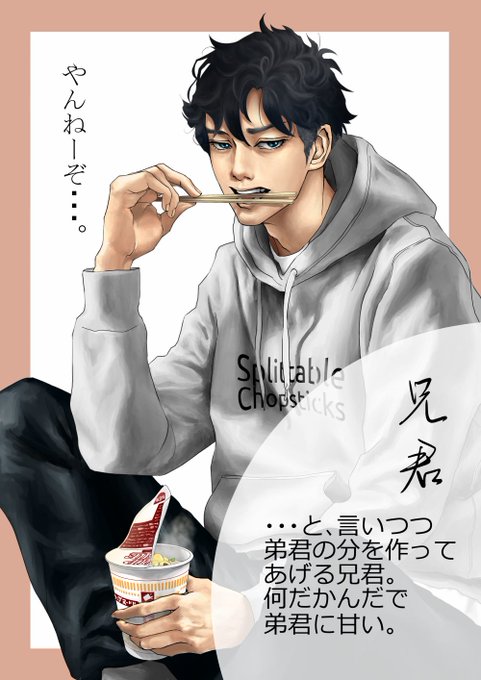 「いとでんわ(糸電話)」 →「わりばし(割り箸)」 兄君です😌 #お絵描きしりとり #イラスト #イラスト練習中 #カップヌードル