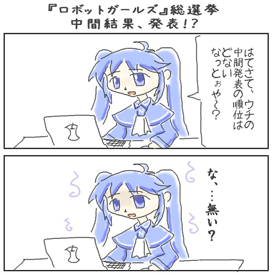…ついに発表されました、『ロボットガールズ』総選挙の中間発表。…はてさて、我らが、いまもえ姐さんの気になる順位は…?