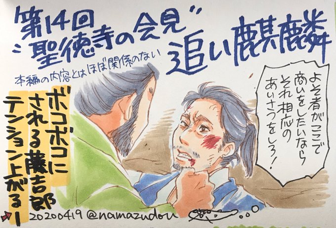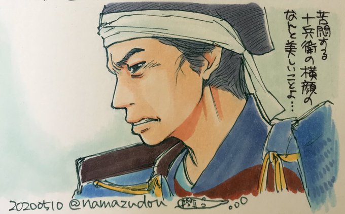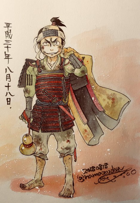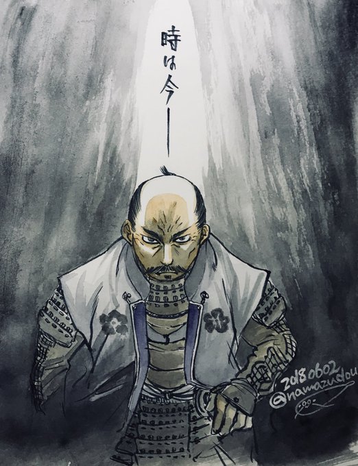 天正十年六月絵、毎年一枚ずつ描いてたら何となく連作っぽくなってきた。光秀と信長と秀吉。