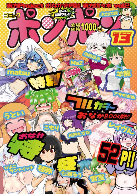 10/22の紅楼夢にて頒布させていただく東方おなか合同「コミックポンポン」の方が入稿完了したので宣伝~ 漫画冊子+付録風カラーイラスト冊子のセットで1000円で頒布させていただきますよろしくお願いいたします~!