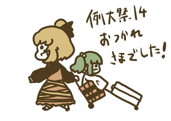 今朝がた自宅に帰還しました 改めて例大祭おつかれさまでした!当スペースにきていただいたみなさんありがとうございます!いただいた新刊や差し入れじっくりと味わわさせていただきますっ…!