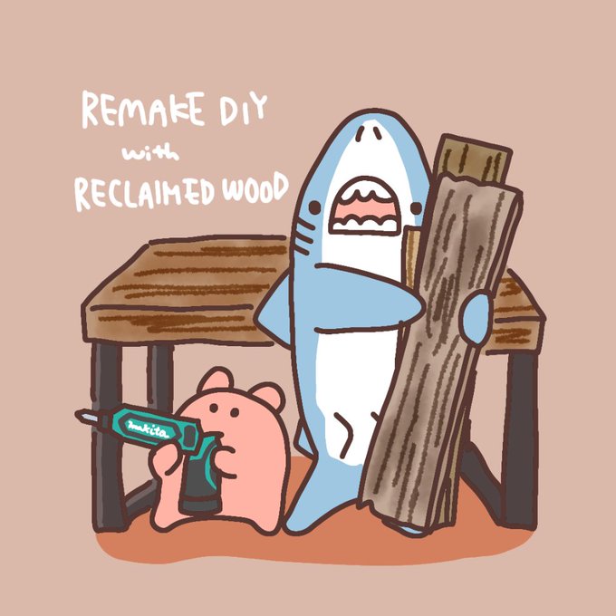 サメとメンダコDIY工房?🛠 #古材の日 #今日は何の日 #イラスト #サメとメンダコ
