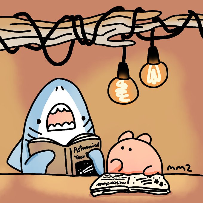 オリオン座流星群見たかったけど曇ってたサメとメンダコ💫 #あかりの日 #イラスト #サメとメンダコ