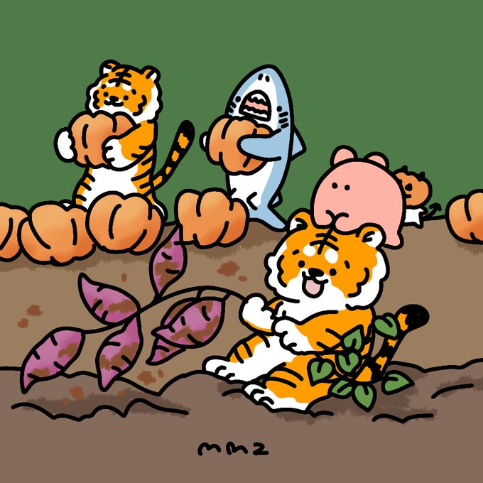 収穫の季節🍠🎃✨ #おいもほりの日 #イラスト #サメとメンダコ #鮫 #めんだこ