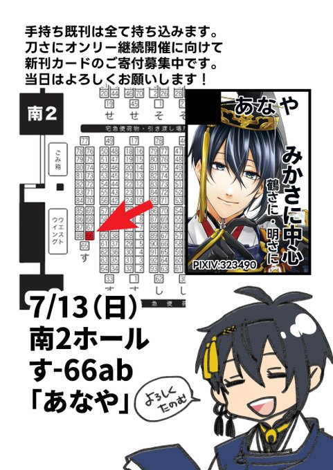当日は来年以降の投票イベントにて刀さにオンリー開催に向けた新刊カードも集めています🙇♀️どうぞよろしくお願いします!‼️‼️