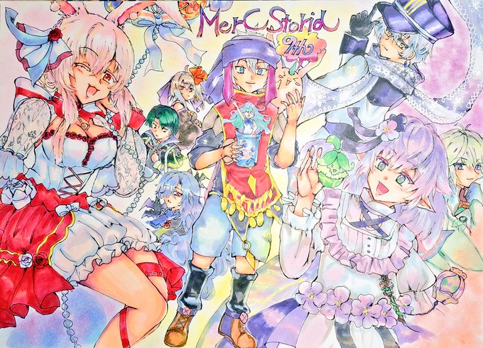 加工前と加工アプリ使用後のメルストのイラスト 模様で挫折しました…(゜ロ゜) 色塗りはほぼコピックです~後はペンで瞳の光いれたり、金銀のペンで模様描いたり(失敗したり挫折してます)