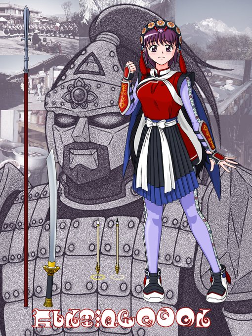 山の精霊巨神三朶本体が完成したので、オリジナル魔法少女丁学美さんの設定イラストが完成しました。三朶は武器を描くのでもう少しかかります。#オリジナル魔法少女 #マギアレコード