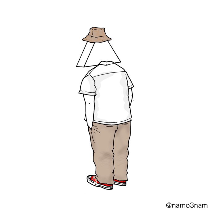 8/4 おじいちゃんスタイル👴🏻 サファリハット カーキ ベージュ 白シャツ ディッキーズ カーキ コンバース 赤 レッド #3NAM イラスト
