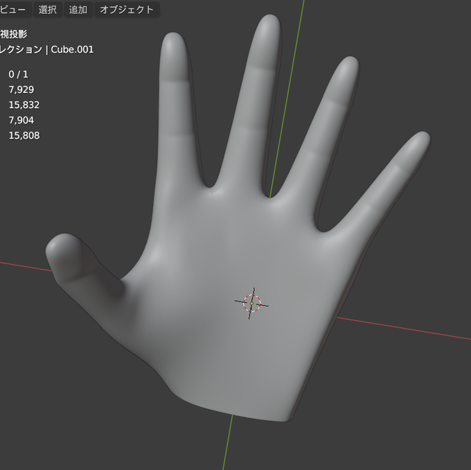 19日目 親指作ったので手が完成✋ただ親指長いし角度が怪しい。 #blender初心者