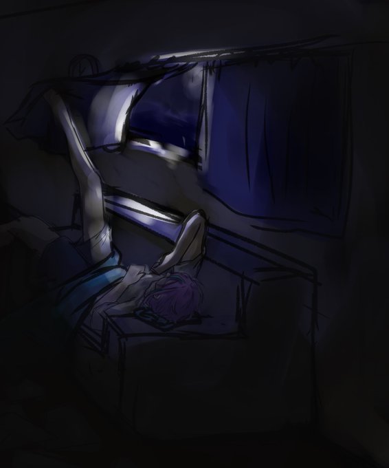 夜のめっちゃ遅い時間とかとにかく目が覚めて眠れない時に体の疲れが残ってる中足とかでしゃっとカーテン開けて月の光やら街の光やらを眺めると凄く不思議な気分になるけど逆にそれが何処か好きなんだよねってのを類くんで表現して描きたかったんだけど上手く伝わらないような感じになっちゃった落描き