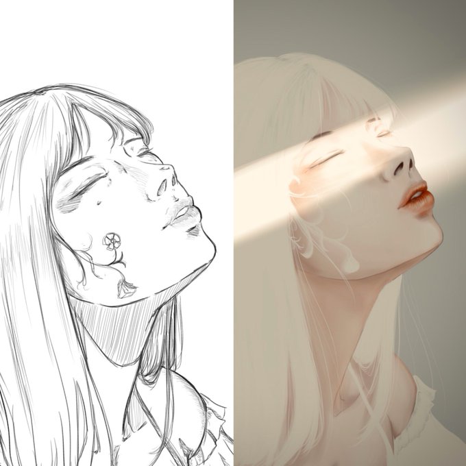 下書きの描きこみ差があっておもしろい! 当たり前やけどちゃんと描き込んでる方が塗りめっちゃやりやすいですね🙂 #絵師さんと繋がりたい #イラスト好きさんと繋がりたい #ラフ画比較