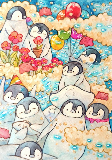 ぺぺぺぺぺ🐧 #イラスト #お絵かき #透明水彩