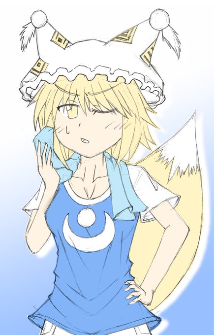 #深夜の真剣お絵描き60分一本勝負 タオルで汗を拭く藍様。しっぽは省略。色を塗ってみようと思ったけど、いつもの塗り方では無理だと中断。白黒に慣れすぎるのも考えもの。