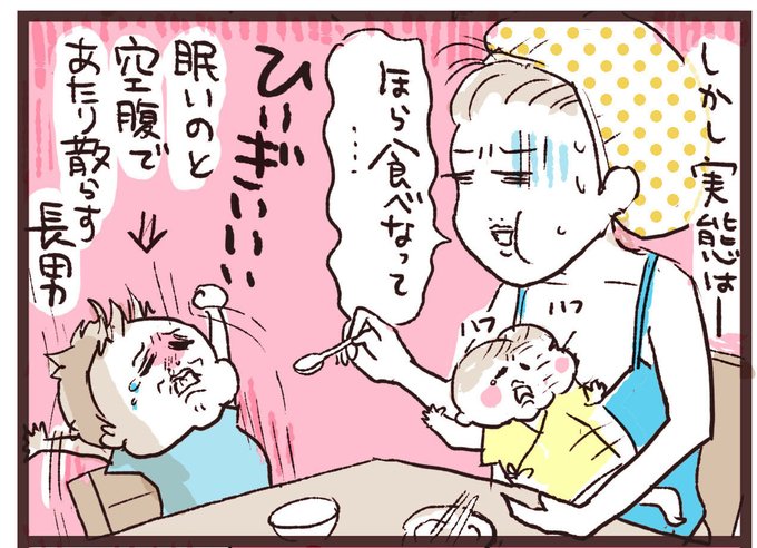 【ママたちの育児現場−No.54】 期待に胸膨らませ始まった4人家族スタート・・・? 4人家族というか、子供が起きてる時間帯ほとんど夫不在😭 ※寄せられたエピソードを漫画にしてます #コミックエッセイ #育児日記 #過去絵