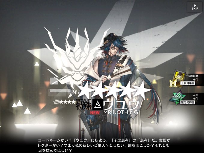 前出なかったから嬉しいけど複雑な気持ちだ…。CVが黒田崇矢さんのオジサマキャラ、最近別のアプリでも見てるからかな?