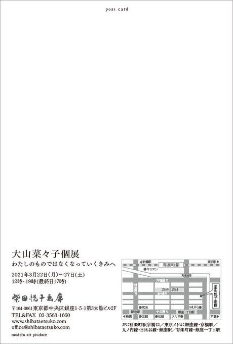 会期:2021年3月13日(土)〜3月28日(日) ※月、火休廊