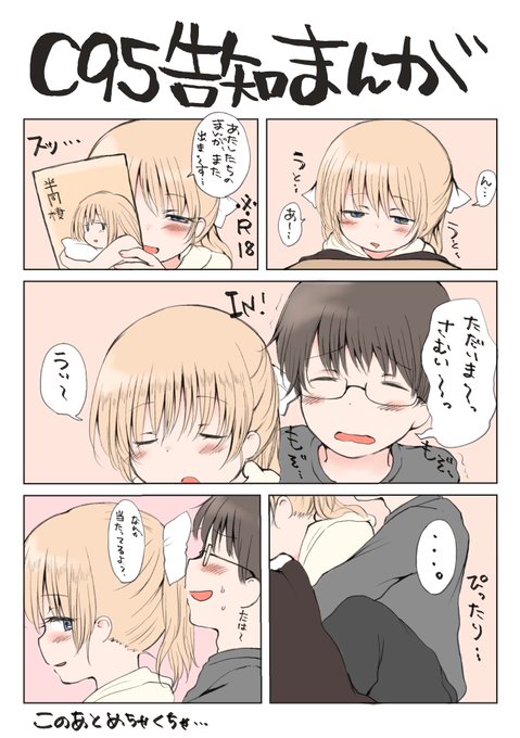 【C95】オリジナル成年向同人誌出します!バカップルがまたアレする漫画です。 サンプル(pixiv)→https://t.co/hZrLA7y0sY 委託:メロンブックス→https://t.co/J0Zd2O6eYm DLsite(予告)→https://t.co/j51uw415a6