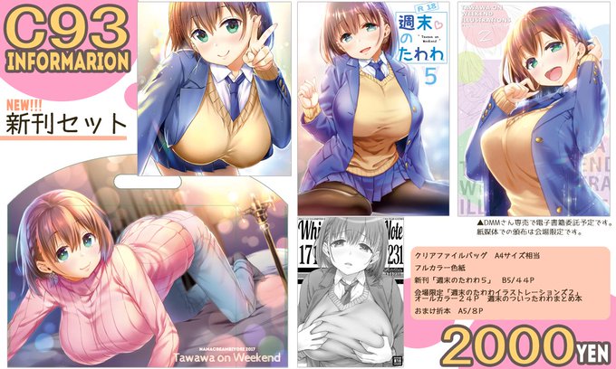 コミックマーケット93のお品書きです。週末のたわわシリーズ既刊(1部600円)もあります!日曜日東シ-24a「 生クリームびより」 よろしくお願いいたします。
