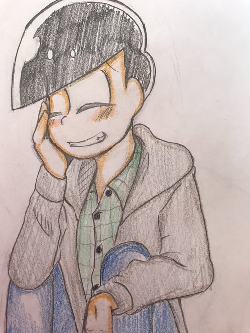 部屋を漁ってたら出て来た去年1月の絵を(^-^)⊃⌒🎁 ちなみにうちは3男推しの水陸で春松でふ❤💙💚💜💛💕 #おそ松さん #過去絵