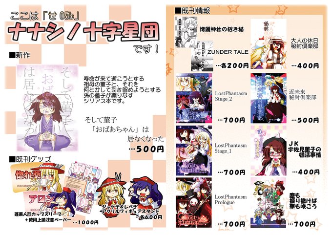 というワケで明日開催される博麗神社秋季例大祭に「せ05b ナナシノ十字星団」にてサークル参加致します!