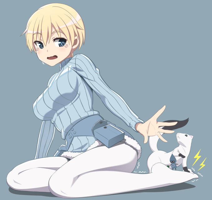 ブレイブウィッチーズのニパさんと正座で痺れた足を気遣う使い魔と妖精