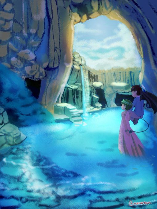 #甘辛版絶被デビめが 背景がっつり描いたけど、まわり神さまばかりで、がっつりじゃないのでは?って恐くなりました( ;∀;) 地底湖です。 被りました( ;∀;) 楽しかったです!主催お二人ともすごい息合ったコンビネーションで素敵でしたwお疲れ様です! 罰ゲームがんばる😌