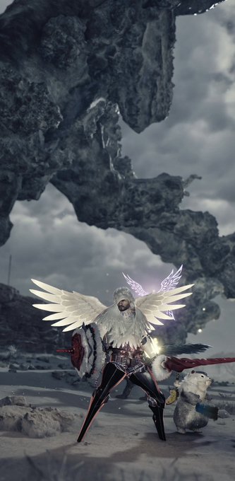 フォトモード、ワンクリックで90度回転とかあると助かるんだけど 縦型スクショおもろいー #モンハンワイルズ