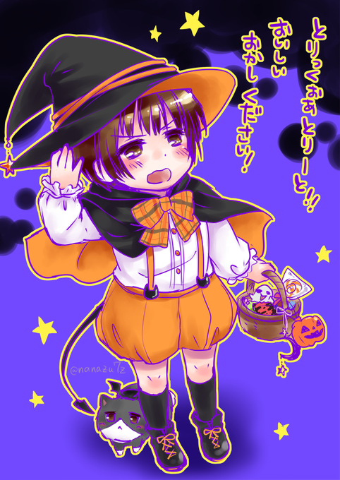 数日前に描いたハロウィン子菊ちゃん!おかし一択! どろぽんさんと表情かぶってたことにさっき気づいた