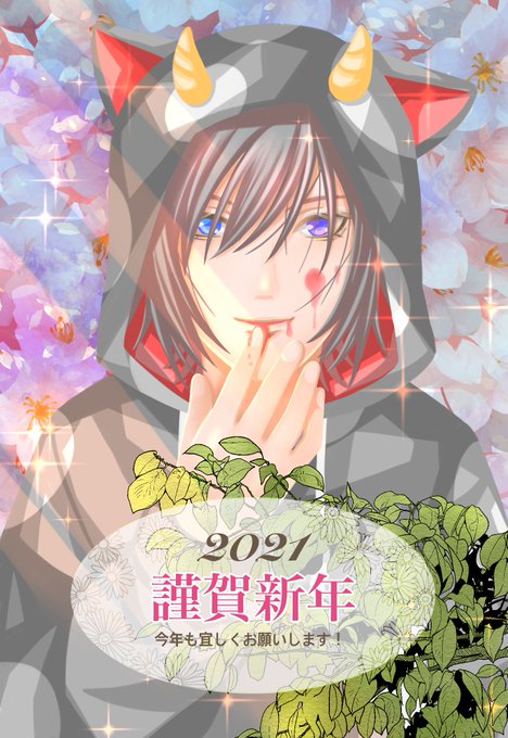 エアコミケ2用のポストカード兼御年賀イラスト出来ました☺ 丑男(うしお)くんです(笑) ポストカード用にもうちょいアレンジしようかな…🤔💭 #絵描きさんと繋がりたい
