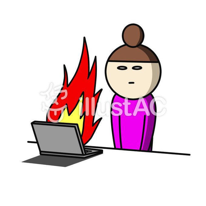 燃えたpc描きました。