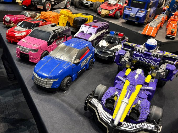 シフトカー劇中プロップ、当たり前なのだが手元にあるおもちゃシフトカーの、何倍も大きくて、「幼児がTV番組の着ぐるみと直に会ったら、想像より大きくて泣く」気持ち(? ブンブンもいたよ!最初のゾーンで『カレーは辛ぇが華麗なり』が流れ出して笑った タイヤ人間撮りたいのに、どうしても雉野
