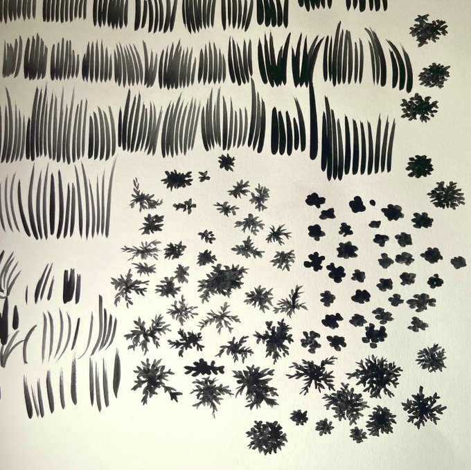 紙に絵の具で草生やして、PCに取り込んでクリスタ用植物描きペン作って、ペタペタして背景を描く という作業などをしてたり 相変わらずリュウジの原稿を待ってる今日このごろ