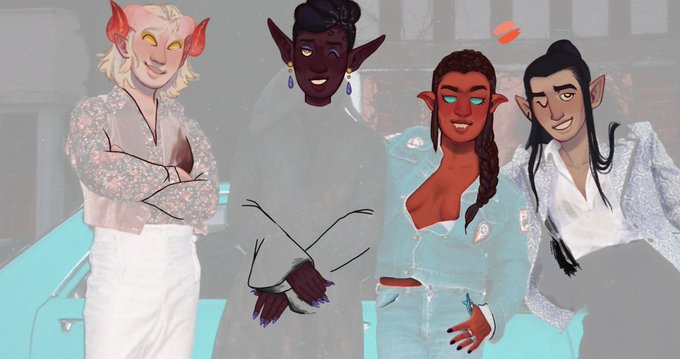 I dont have a lot of new/finished stuff but I still wanted to showcase some (though not all) of my black ocs for today's #blacktober prompt! Every one is black. Yes, the bird girl too.