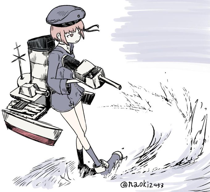 吹雪を見ながら描いた潮だよ~ん。偽装が特型だよーん。電探とかむり。ぃみわかんなぃ。 #艦これ版深夜の真剣お絵描き60分一本勝負