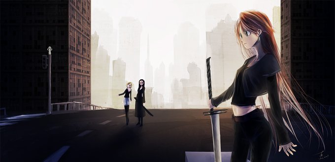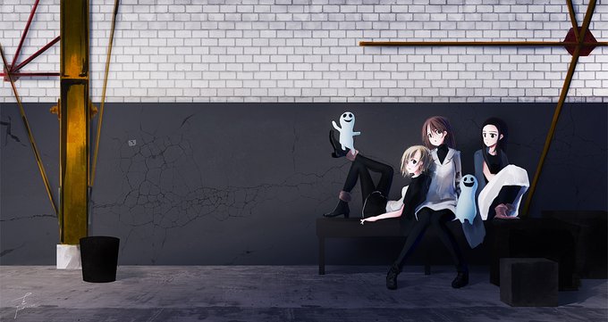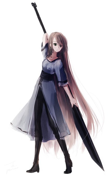 うちの子3人 #イラスト #うちの子 適当に武器っぽいものを持たせてみる