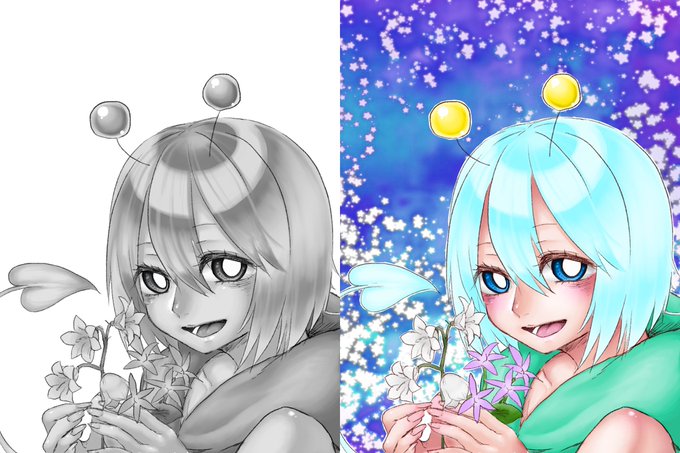 あちゃこさんが私の線画を塗ってくださったのでフォロワー見てすごいかわいい色合いが優しくてサイコーフリルの布感が神おっぱいでっっっっっっっっっかってなるほんときれいだから見て私が塗ったやつより1億倍すばらしい
