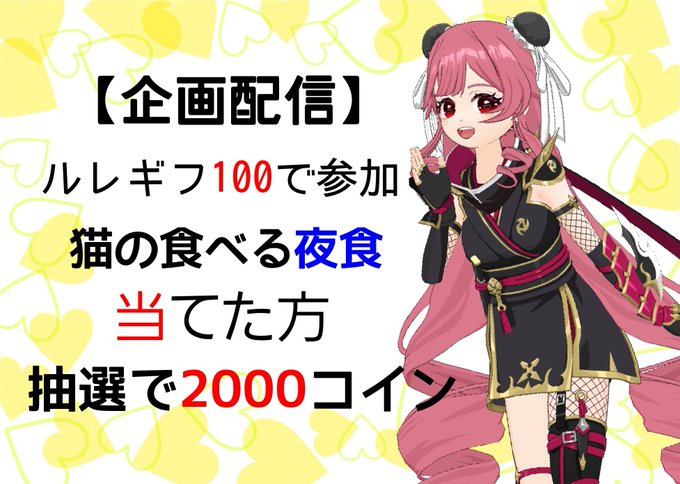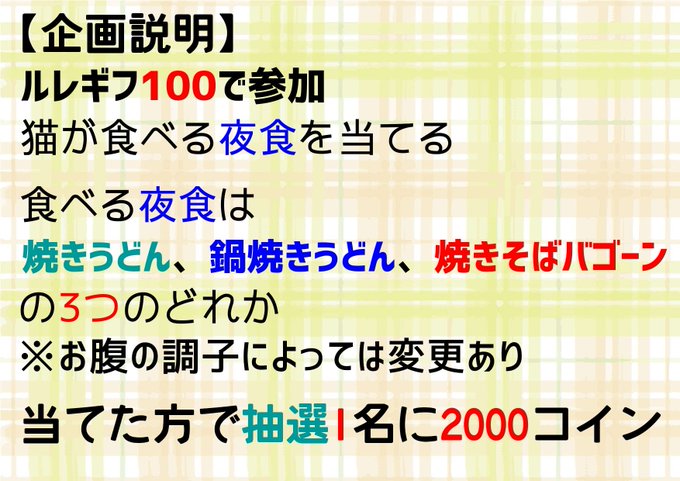 ルレギフ100で参加、猫の食べる夜食を当てた方で抽選で2000コイン